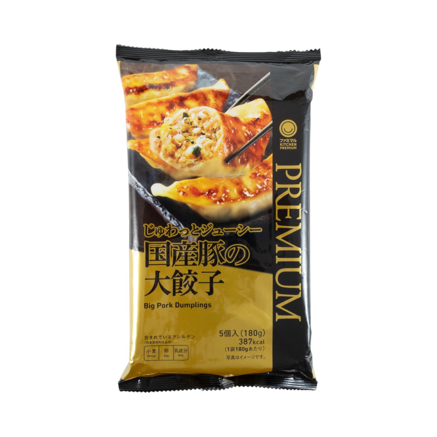 「ファミマル じゅわっとジューシー国産豚の大餃子」は、ファミリーマートのプライベートブランドであるファミマルPREMIUMがこだわり抜いて開発した、国産豚肉と国産キャベツを使用した冷凍餃子です。電子レンジ調理が可能で手軽に食べられることも魅力。ジューシーさを追求した製法で、肉汁が溢れ出る仕上がりです。