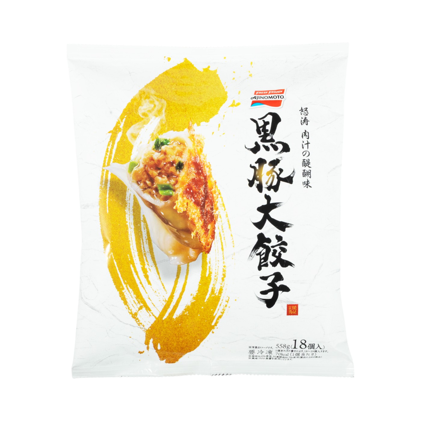 「黒豚大餃子」は味の素冷凍食品の提供する大きめでプレミアム感のある冷凍餃子です。鹿児島県産または九州産の黒豚と国産野菜を使用し、もっちりした厚皮で包まれています。XO醤を使ったコク深い味わいで、油・水なしで手軽に調理ができ、家庭でも手軽に楽しみやすい商品です。
