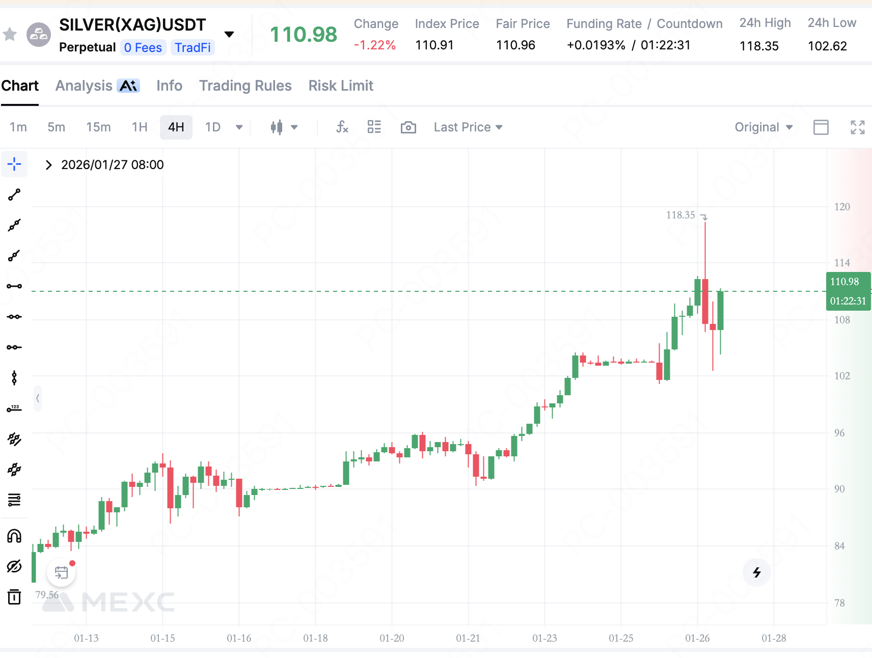 One of the clearest signals of changing conditions is the surge in volatility. Implied volatility in silver-related instruments has climbed into triple-digit territory, meaning the market is pricing in daily moves of roughly 7%. This level of volatility is rare for silver and even uncommon among many high-risk assets.
