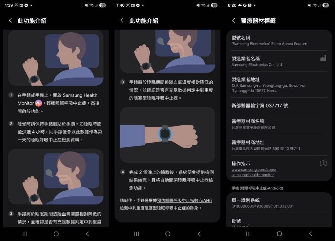 而目前獲得台灣衛福部食藥署核准開放「睡眠呼吸中止檢測」功能的Galaxy Watch系列錶款 (註),能將「醫療級的篩檢」變成「居家日常」即可使用功能,雖然不能完全取代醫師診斷,但作為第一道防線的「快篩工具」,不僅大幅降低檢測難度,更能協助使用者更快察覺是否有潛在的睡眠呼吸中止症。